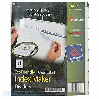 Binder Divider Index Tab Type Print-On Labels Tab Message Blank Index Tab Color White Number of Tabs 8 Width 8 1/2 in Height 11 in Tab Cuts Visible 8 Thickness 0.007 mil Material Paper For Use With 3 Ring Binders Laser/InkJet Printers Binder Divider