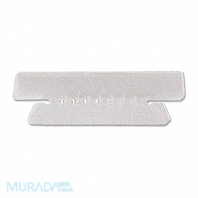 Hanging Folder Plastic Tabs Index Tab Type Plastic Tab Tab Message Blank Index Tab Color Clear Number of Tabs 25 Width 3 1/2 in Height 1/2 in Tab Cuts Visible 5 Thickness 0.008 mil Material Plastic For Use With Hanging File Folders Hanging Folder Plastic Tabs Package Quantity 25
