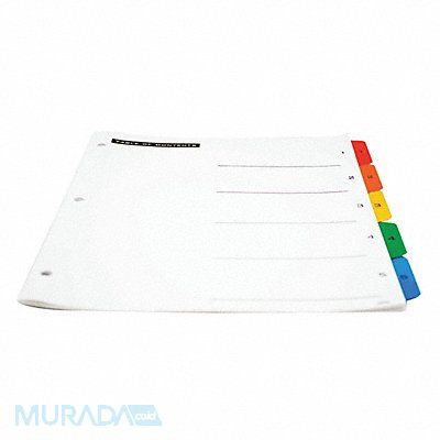 Binder Divider Index Tab Type Preprinted Tabs Tab Message 1 to 5 Table of Contents Index Tab Color White Number of Tabs 5 Width 8 1/2 in Height 11 in Tab Cuts Visible 5 Thickness 0.0072 mil Material Paper For Use With 3 Ring Binders Laser/InkJet Printers Binder Divider