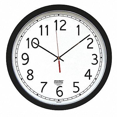 Wall Clock Analog Clock Movement Type Manual Arabic Shape Round Overall Dia 16 1/2 in Face Dia 14 1/2 in Frame Color Black Basic Power Source Battery Mount Wall Width 16 1/2 in Features High Quality Quartz Movement Stylish Contemporary Design Case Material Polystyrene Case Color Black Face Color White Legend Skilcraft Ability One Time Adjustment Automatic Daylight Saving Time Adjustment Manual Lens Material Polystyrene Shatterproof Interface Quartz Movement