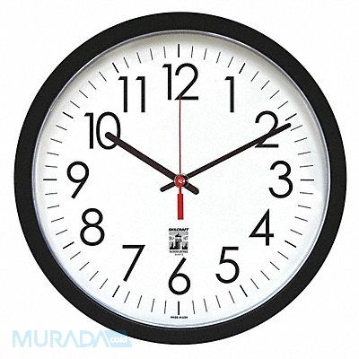 Wall Clock Analog Clock Movement Type Memory Chip Arabic Shape Round Overall Dia 14 1/2 in Face Dia 12 1/2 in Frame Color Black Basic Power Source Battery Mount Wall Width 14 1/2 in Features Automatically Adjusts In Spring and Fall By Memory Chip Stylish Contemporary Design Case Material Polystyrene Case Color Black Face Color White Legend Skilcraft Ability One Time Adjustment Automatic Daylight Saving Time Adjustment Memory Chip Lens Material Polystyrene Shatterproof