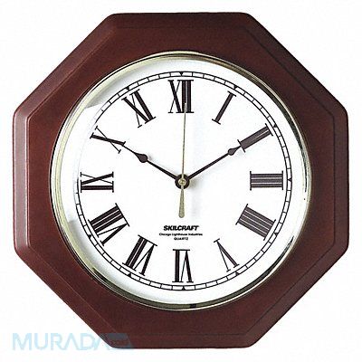 Wall Clock Analog Clock Movement Type Manual Arabic Shape Octagon Overall Dia 12 in Face Dia 8 1/2 in Frame Color White Basic Power Source Battery Mount Wall Width 12 in Features Genuine Hardwood with High Quality Movement Case Material Wood Case Color White Face Color White Legend Skilcraft Ability One Time Adjustment Manual Lens Material Glass Interface Quartz Movement Includes 3 yr Limited Warranty Depth 1 3/4 in Height 12 in Specific Power Source (1) AA Battery