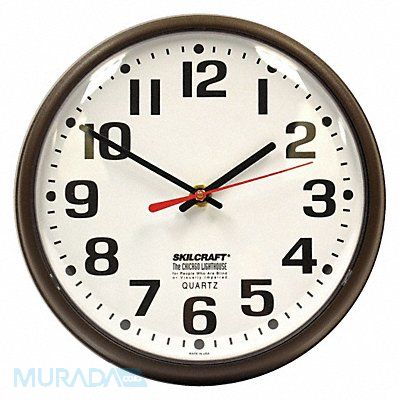 Wall Clock Analog Clock Movement Type Manual Arabic Shape Round Overall Dia 9 1/4 in Face Dia 8 in Frame Color Brown Basic Power Source Battery Mount Wall Width 9 1/5 in Features High Quality Quartz Movement Modern Slimline Design Case Material Polystyrene Case Color Brown Face Color White Legend Skilcraft Ability One Time Adjustment Manual Lens Material Polystyrene Shatterproof Interface Quartz Movement Includes 3 yr Limited Warranty and Hanging Hardware Depth 1 3/4 in