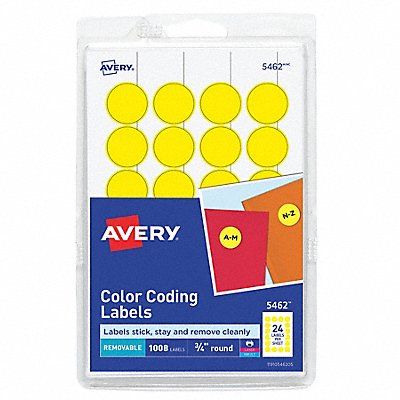 Laser/Inkjet Label Avery Template Number 5 462 For Use With Laser/Inkjet Label Height 3/4 in Label Width 3/4 in Color Yellow Repositionable Adhesive Material Paper Laminated No Labels per Sheet 24 Total Number of Labels 1 008 Recycled Content 0 Percent Package Quantity 42