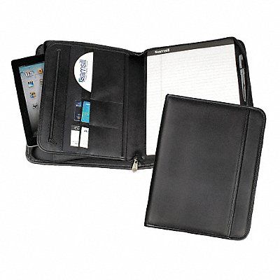 Portfolio Cover Color Black Cover Material Simulated Feather Sheet Size 8-1/2 in x 11 in Includes Writing Pad Features 2 CD Pockets 4 Business Card Slots Exterior Pocket Inside Expandable Document Pocket Pen Loop and Wraparound Zipper Closure Zippered Security Compartment