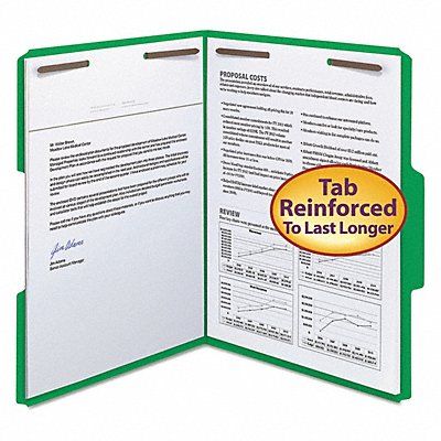 SMEAD Folders 2 Fastener Green PK50, 50XV16