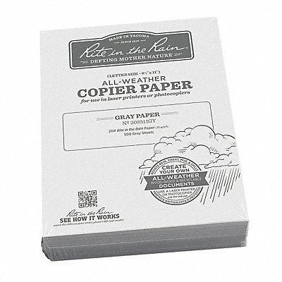 Waterproof Laser Paper Sheet Size 8 1/2 in x 11 in Paper Size Name Letter Paper Weight 20 lb Color Gray Finish Water-Resistant 3 Hole Punch No Total Number of Sheets 500 Number of Reams per Case 10 For Use With Copiers Non-inkjet Printers