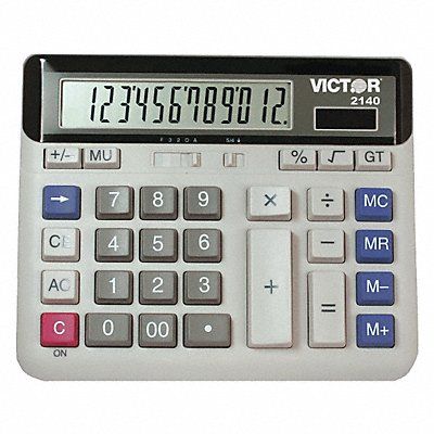 Desktop Calculator Portable Length 6 in Width 7 1/2 in Depth 1 5/8 in Display Digits 12 Display LCD Display Dimensions 7/8 in H x 4 5/16 in W Mark Up Key PC Touch Keyboard Selectable Decimal and Rounding Switches Power Supply Battery Solar