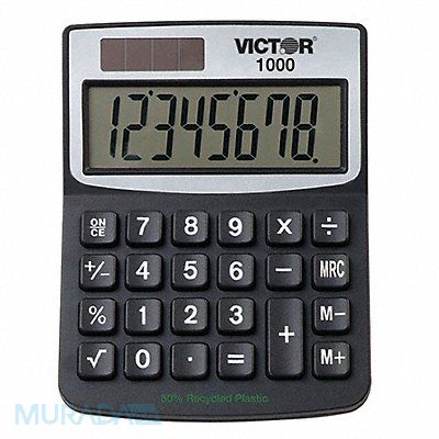 Calculator Mini Desktop Length 4 1/4 in Width 3 1/4 in Depth 1/2 in Display Digits 8 Display LCD Display Dimensions 18mm 3 Key Independent Memory Change Sign Percent Square Root Manufactured with 50 Percent Recycled Plastic Power Supply Battery Solar