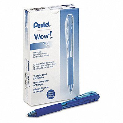 Ballpoint Pen Pen Tip 1 mm Barrel Material Plastic Barrel Color Blue Pen Grip Latex-Free Cushion Pen Cap Retractable Includes Pen Cushion Yes Pen Ink Color Blue Series WOW!(TM) Features 3-Sided Triangular Barrel Package Quantity 12