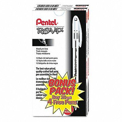 Ballpoint Pen Pen Tip 1 mm Barrel Material Plastic Barrel Color Translucent Pen Grip Latex-Free Cushion Pen Cap Capped Includes Pen Cushion Yes Pen Ink Color Black Series R.S.V.P.(R) Package Quantity 24