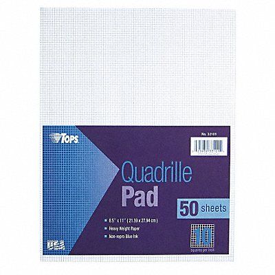 Notepad Cover Color Blue Binding Nonwirebound Binding Location Top Backing 28 pt Chipboard Total Number of Sheets 50 Sheet Size 8-1/2 in x 11 in Rule Quadrille Paper Color White Paper Weight 20 lb Pages Numbered No Number of Carbon Sheets 0 Recycled Content 0 Percent