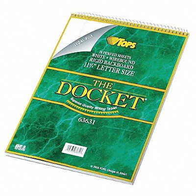 Notebook Cover Color Dark Green Cover Material Bond Binding Wirebound Binding Location Top Backing 60 pt Paperboard Total Number of Sheets 70 Sheet Size 8-1/2 in x 11-3/4 in Rule Legal Paper Color White Paper Weight 16 lb Pages Numbered No Number of Carbon Sheets 0 Recycled Content 0 Percent