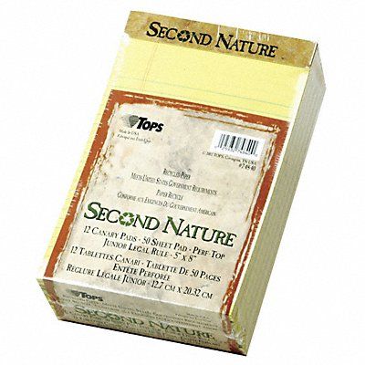 Notepad Binding Nonwirebound Binding Location Top Backing 30 pt Chipboard Total Number of Sheets 600 Sheet Size 5 in x 8 in Rule Narrow Margin Yes Paper Color Canary Paper Weight 16 lb Pages Numbered No Number of Carbon Sheets 0 Recycled Content 100 Percent Package Quantity 12