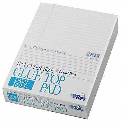 Notepad Cover Color Glue Binding Nonwirebound Binding Location Top Backing 30 pt Chipboard Total Number of Sheets 600 Sheet Size 8-1/2 in x 11 in Rule Legal Margin Yes Paper Color White Paper Weight 16 lb Pages Numbered No Number of Carbon Sheets 0 Recycled Content 0 Percent Package Quantity 12