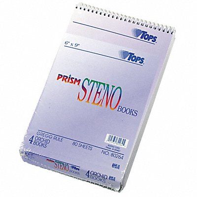 Notebook Cover Color Orchid Cover Material Chipboard Binding Wirebound Binding Location Top Backing 40 pt Chipboard Total Number of Sheets 320 Sheet Size 6 in x 9 in Rule Gregg Paper Color Orchid Paper Weight 15 lb Pages Numbered No Number of Carbon Sheets 0 Recycled Content 0 Percent Package Quantity 4