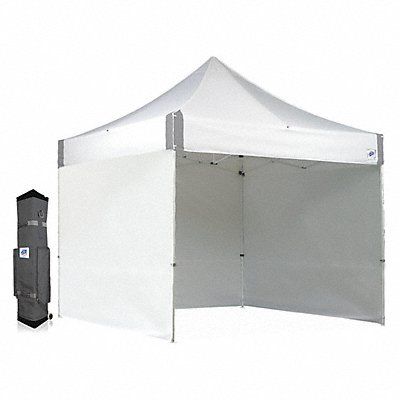 Instant Canopy Length 10 ft Width 10 ft Center Height 11 ft 5 in Side Height 6 ft 10 in White Material Polyester Frame Material Steel Fire Rating CAN/ULC-S109 CPAI-84 NFPA-701 Leg Outside Dia 1-1/4 in Includes (3) Dura-Lon(R) Plus Sidewalls (4) Piece Spike Kit Mid- Zip Dura-Lon(R) Plus Sidewall Roller Bag Shelter