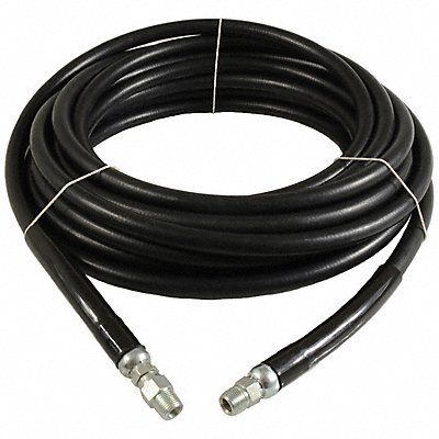 Pressure Washer Hose Hose Inside Dia 3/8 in Hose Outside Dia 0.69 in Hose Length 100 ft Hose Color Black Hose Tube Material Synthetic Rubber Hose Cover Material Nitrile Max Working Pressure @ 70 F 6 000 psi Temp Range 0 Degrees to 250 Degrees F Standards RMA Class B Hose Fitting A Material Carbon Steel Hose Fitting B Material Carbon Steel Hose Fitting A Type MNPT Hose Fitting B Type MNPT Hose Fitting A Size 3/8 in Hose Fitting B Size 3/8 in Hose Configuration Coupled Assembly