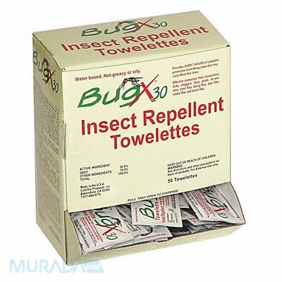Insect Repellent Insect Control Type Repels Flying Targeted Insects Mosquitoes Form Wipes Size 8 in x 5 in Active Ingredients DEET DEET Concentration 30.00 Percent Outdoor Only Dilution Ratio Ready to Use Package Quantity 50