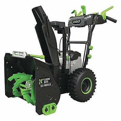 Snow Blower 24 in Clearing Path Inlet Height 20 in Battery Operated Torque Battery Type Lithium-Ion Engine Brand EGO Voltage 56 V Amps 5 Ah Drive Gears 1 Forward Drive Type Auger Stages 2 Start Type Electric Number of Batteries 2 Wheel Dia 15 in Auger Type Metal Chute Rotation Manual Chute Turning Radius 200 Degrees Lights Yes Features High-Efficiency Brushless Motor LED Headlights Rear Chute Deflector