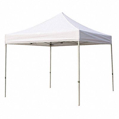 Instant Canopy Length 10 ft Width 10 ft Center Height 7 ft to 8 ft Side Height 6 ft 4 in to 7 ft White Material 300D UV Polyester Frame Material Steel Fire Rating CPAI-84 Leg Outside Dia 1-1/8 in Upper Leg 1 in Lower Leg Includes Anchor Kit Roller Bag