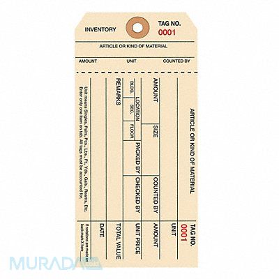 Inventory Tags Stub 6 1/4x3 1/8 in PK1000 Package Quantity 1000