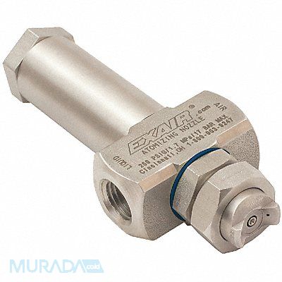 Atomizing Spray Nozzle Fluid Delivery Type Pressure Fluid Delivery Speed Low Flow Rate 1 to 3.8 gph Spray Pattern @ 15 in 13 in W Material Stainless Steel Thread Size 1/4 FNPT Air Consumption 0.8 to 5.1 scfm Max Working Pressure 250 psig Features Can Be Used with Liquids Up to 800 Centipoise No Drip External Mix Nozzles Offer The Highest Flow Rates