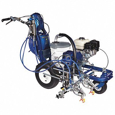 Airless Line Striper LineLazer V 5900 hp Automatic Power Source Fuel 5.5 hp HP Guns Supported 2 Second Gun Outlet Yes Max Tip Size 0.043 in Line Width 2 in to 12 in Flow Rate 1.6 gpm Max Pressure 3 300 psi Body Material Metal Max Hose Length 50 ft Engine Displacement 160 cc Application Pavement Line Striping for Parking Lots Airports Construction Zones Intersections Roads Net Weight 266 lb Overall Height 44 1/2 in Overall Length 68 3/4 in Overall Width 34 1/4 in
