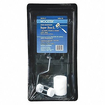 Trim Paint Roller Kit 3 in Roller Length Nap Size 3/8 in Cover Material Woven Fabric Surface Material Concrete Drywall Masonry Metal Wood Surface Type Semi-Smooth 3 in Overall Length Paint Roller Type Mini Paint Roller Kit Roller Frame Style 4 Wire Cage Handle Material Plastic Paint Type All Paints Enamels Varnishes Handle Color Black Shank Material Galvanized Color White Compatible with Grainger Part Number 36T176 6WB45