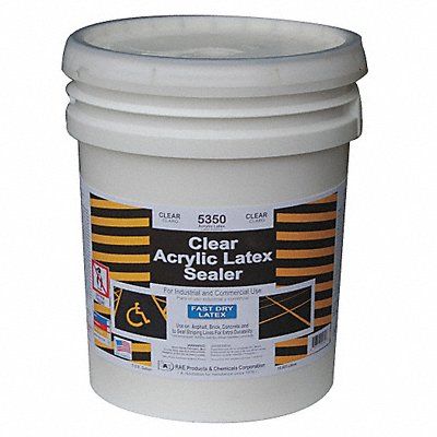 Clear Sealer Waterborne VOC 60 Grams per Liter Size 5 gal Color Clear Semi Gloss Finish Coverage 425 to 475 Square-Ft. Dry Time Tack Free 120 Min Dry Time Tack Free 2 Hours Dry Time - Light Traffic 24 Hrs. Dry Time 24 Hours Dry Time Recoat 24 Hours Application Temperature 50 to 100 Degree F Application Method Brush Roll or Spray Machine Asphalt Concrete or Brick Exposure Conditions Mild and Moderate