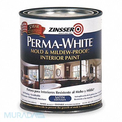 Interior Paint For Use On Surface Material Ceramic Concrete Drywall Metal Plaster Plastic Stucco Wood Paint Base Type Water Paint Color Family Whites Color White Finish Satin Size 1 qt Coverage 125 sq ft VOC Content Less Than 150g/L Dry Time Recoat 2 hr Dry Time 2 hr Application Method Brush Roll Spray Features Mold and Mildew Proof Standards ASTM D5590 and ASTM D3273