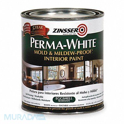 Interior Paint For Use On Surface Material Ceramic Concrete Drywall Metal Plaster Plastic Stucco Wood Paint Base Type Water Paint Color Family Whites Color White Finish Eggshell Size 1 qt Coverage 125 sq ft VOC Content Less Than 150g/L Dry Time Recoat 2 hr Dry Time 2 hr Application Method Brush Roll Spray Features Mold and Mildew Proof Standards ASTM D5590 and ASTM D3273