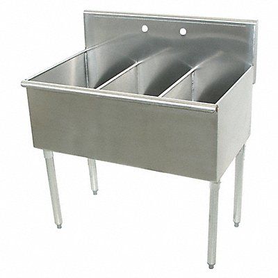Scullery Sink ADA Compliance No Back Splash Height 8 in Bowl Depth 14 in Rectangular Bowl Size 36 in x 21 in Silver Drain Opening 3 1/2 in Drainboard Location No Drainboard Faucet Hole Dia 1 1/8 in Faucet Installation Style Widespread Faucet Mounting Centers 8 in Satin Gauge 16 ga Mounting Location - Faucet Splash Mounting Type - Sinks Floor No of Bowls 3 Number of Drainboards 0 Number of Faucet Holes 2 Overall Height 41 in Overall Length 36 in Overall Width 24 1/2 in