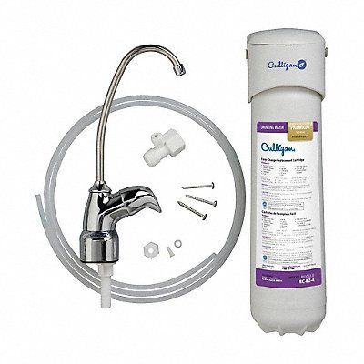Water Filter System Reduces Atrazine Chloramine Chlorine Taste and Odor Cyst Lead Lindane Mercury Methyl Tertiary Butyl Ether (MTBE) Particulates Sediment Turbidity Volatile Organic Compounds (VOCs) Micron Rating 0.5 micron Connection Size 1/4 in Overall Height 14 in Width 3 3/4 in Service Life 500 gal Includes Valve Yes Flow Rate 0.5 gpm Application Under Sink Color White Connection Type NPT Depth 8 3/4 in Filter Media Carbon Head Material Polypropylene