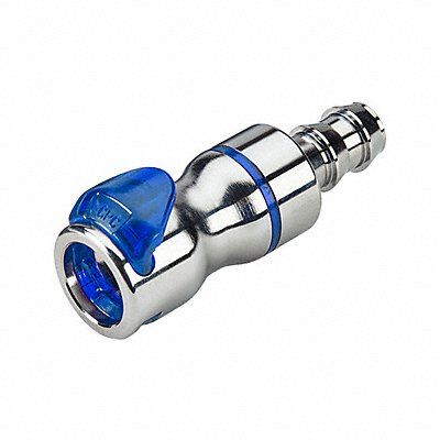 Quick Disconnect Application Dielectric Coolants Glycol/Water Coolants Fitting Side A Connection Type Coupler Fitting Side B Connection Type Barbed Fitting Side B Tube Inner Diameter 1/2 in Flow Control Type Shut-off Fitting Material Brass Overall Length 3 3/32 in Specific Fitting Shape Straight Coupler Finish/Coating Chrome Material Grade CA360 Standards REACH RoHS Color Chrome/Blue Maximum Operating Pressure 120 psi Maximum Operating Temperature 240 Degrees F