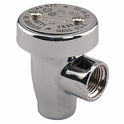 Anti-Siphon Vacuum Breaker Size 1 in Connection Type NPT Material of Construction Lead Free Chrome Brass Seal Silicone Max Pressure 125 psi Temp Range 33 Degrees to 180 Degrees F Height 3 5/8 in Width 2 7/8 in Standards ANSI A112.1.1 ASSE 1001 CSA B64 Compliance ANSI A112.1.1 ASSE 1001 CSA B64 Lead Free