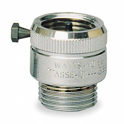 Vacuum Breaker Size 3/4 in Connection Type GHT Material of Construction Chrome-Plated Brass Seal Rubber Max Pressure 125 psi Temp Range 180 Degrees F Height 1 1/2 in Width 1 3/8 in Standards ANSI A112.1.3 ASSE 1011 CSA B64.2 UPC