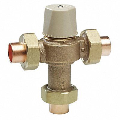 Thermostatic Mixing Valve Body Material Lead Free Copper Silicon Alloy Flow Rate 13 gpm Inlet Type Union Outlet Type Solder Inlet Size 1 in Outlet Size 1 in Temp Range 80 Degrees to 120 Degrees F Max Pressure 150 psi Overall Height 5 7/8 in Overall Width 5 13/16 in Inlet Temperature (Cold) 33 Degrees to 85 Degrees F Inlet Temperature (Hot) 120 Degrees to 180 Degrees F For Use With Domestic Hot Water Applications Standards 1069 1070 ASSE 1017
