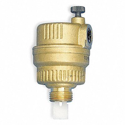 Automatic Vent Valve Inlet Size 1/4 in Body Material Brass Connection Type MNPT Float Material Polyethylene Max Pressure 150 psi Min Pressure 1.45 psi Temp Range 33 Degrees to 240 Degrees F Vent Dia 1 1/4 in Vent Height 3 1/8 in
