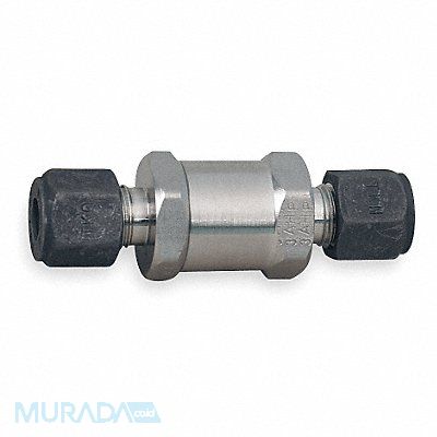 Item - Check Valves Check Valve Flow Design Single Mechanism and Body Design Inline Poppet Body Material - Valves 316 Stainless Steel Pipe or Tube Size 1/4 in Connection Type Compression x Compression Cracking Pressure 10 psi Mounting Orientation Horizontal Vertical Seal Material Fluorocarbon Max Temp - Valves 400 Degrees F Min Temp - Valves -15 Degrees F Max Water Pressure - Valves 6000 psi @ 100 Degrees F Max Steam Pressure - Valves Not Rated Seat Material Fluorocarbon