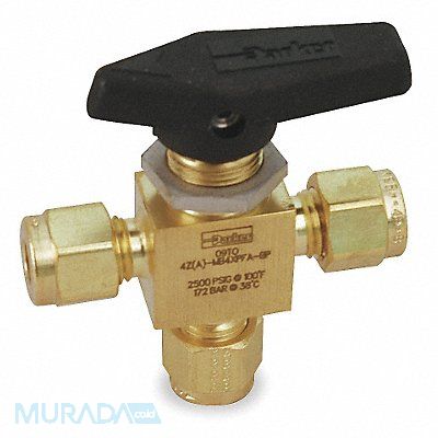 Mini Ball Valve Body Material Brass Body Style 3-Way 1-Piece Tube Size 1/8 in Connection Type Comp. x Comp. x Comp. Standard Port Max Pressure 2 500 psi CWP Temp Range -65 Degrees to 300 Degrees F Ball Material 316 Stainless Steel Seat Material PFA Stem Type 1-Piece Stem/Ball Handle Type Lever Handle Material Nylon Stem Material 316 Stainless Steel Body Seal Material PTFE