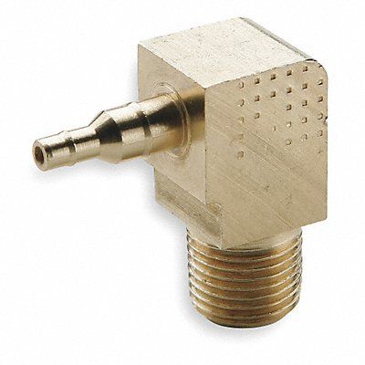Elbow 90 Degrees Fitting Side A Connection Type Barbed Fitting Side B Connection Type MNPT Fitting Side B Pipe Size 1/8 in Fitting Side A Tube Inner Diameter 1/4 in Barb Style Double Barb Fitting Material Brass Material Grade CA360 Overall Length 25/32 in Specific Fitting Shape 90 Degrees Elbow Adapter Application Air Maximum Operating Pressure 150 psi Maximum Operating Temperature 90 Degrees F Compatible Tube Material Polyethylene Minimum Operating Temperature 65 Degrees F