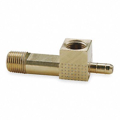 Gauge Tee Specific Fitting Shape Adapter Tee Application Potable Water Barb Style Double Barb Fitting Material Brass Material Grade C36000 Fitting Side A Connection Type Barbed Fitting Side A Tube Inner Diameter 17/100 in Fitting Side B Connection Type MNPT Fitting Side B Pipe Size 1/8 in Fitting Side C Connection Type MNPT Fitting Side C Pipe Size 1/8 in Overall Length 1 29/32 in Maximum Operating Pressure 150 psi Maximum Operating Temperature 90 Degrees F