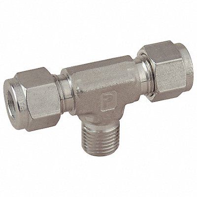 Male Branch Tee Application Gas Oil Fitting Side A Connection Type Compression Fitting Side B Connection Type Compression Fitting Side C Connection Type MNPT Fitting Material Stainless Steel Fitting Side A Tube Outer Diameter 3/8 in Fitting Side B Tube Outer Diameter 3/8 in Thread Size C 9/16-20 Thread Size A 9/16-20 System of Measurement Imperial Compatible Fitting Brands A-LOK Material Grade 316 Maximum Operating Pressure 6 600 psi Maximum Operating Temperature 649 Degrees C