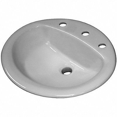 Lavatory Sink Bowl Depth 7 1/2 in Oval Bowl Size 16 1/2 in x 17 in White Drop-In Faucet Hole Dia 1 3/8 in Widespread Faucet Mounting Centers 8 in Unfinished Mounting Location - Faucet Deck Countertop No of Bowls 1 Number of Faucet Holes 3 Overall Height 8 in Overall Length 20 in Overall Width 17 in Sloan SS Series Vitreous China Sink Type Bathroom