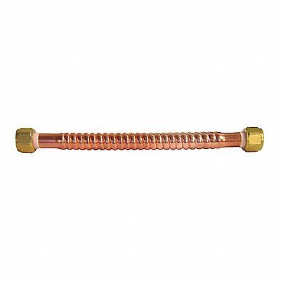 Water Heater Connector Hose Inside Dia 5/16 in Hose Length 18 in Hose Tube Material PVC Hose Cover Material Copper Max Working Pressure @ 70 F 250 psi Temp Range 40 Degrees to 180 Degrees F Standards IAPMO NSF Hose Fitting A Material Brass Hose Fitting B Material Brass Hose Fitting A Type FIP Hose Fitting B Type FIP Hose Fitting A Size 3/4 in Hose Fitting B Size 3/4 in Hose Configuration Bulk Hose For Use With Water Heater Application Water Heater