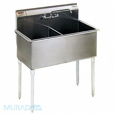 Utility Sink ADA Compliance No Back Splash Height 8 in Bowl Depth 13 3/4 in Square Bowl Size 24 in x 24 in Non CEC Compliant Silver Drain Opening 3 1/2 in Drainboard Location No Drainboard Faucet Body Material Brass Faucet Handle Type Lever Faucet Hole Dia 1 1/8 in Faucet Installation Style Widespread Faucet Mounting Centers 8 in Dual Manual Handle Angled Straight Satin Flow Rate 2.2 gpm Gauge 16 ga Mounting Location - Faucet Splash Floor No of Bowls 2