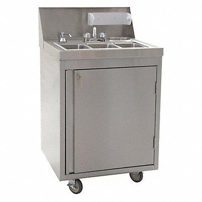Portable Hand Sink ADA Compliance No Back Splash Height 8 3/4 in Bowl Depth 5 in Rectangular Bowl Size 6 1/8 in x 11 5/8 in Non CEC Compliant Silver Faucet Body Material Brass Faucet Handle Type Lever Faucet Hole Dia 1 in Faucet Installation Style Centerset Faucet Mounting Centers 4 in Dual Manual Handle Straight Satin Flow Rate 2.2 gpm For Use With Water Temperature Cold and Hot Water Fresh Water Capacity 5 gal Gray Water Capacity 7 gal Mounting Location - Faucet Deck