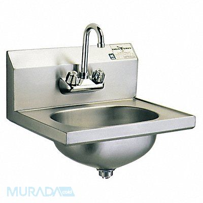 Hand Sink ADA Compliance No Back Splash Height 7 1/2 in Bowl Depth 6 3/4 in Oval Bowl Size 9 3/4 in x 13 1/2 in Non CEC Compliant Silver Drain Opening 1 1/2 in Faucet Body Material Brass Faucet Handle Type Knob Faucet Hole Dia 1 1/8 in Faucet Installation Style Centerset Faucet Mounting Centers 4 in Dual Manual Handle Gooseneck Satin Flow Rate 2.2 gpm Gauge 20 ga Mounting Location - Faucet Splash Mounting Type - Sinks Wall No of Bowls 1 Number of Faucet Holes 2