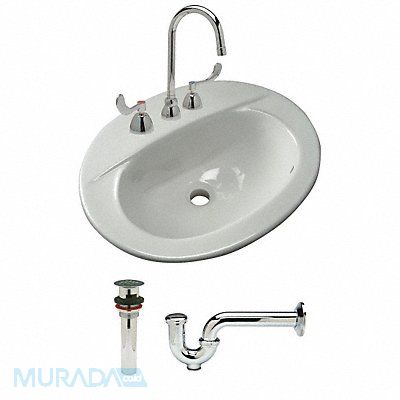 Lavatory Sink ADA Compliance Yes Bowl Depth 6 5/8 in Oval Bowl Size 20 in x 12 1/4 in CEC Compliant White Drop-In Drain Opening 1 1/4 in Faucet Body Material Brass Faucet Handle Type Wristblade Faucet Hole Dia 1 1/4 in Faucet Installation Style Widespread Faucet Mounting Centers 8 in Dual Manual Handle Gooseneck High Gloss Flow Rate 0.5 gpm Mounting Location - Faucet Deck Countertop No of Bowls 1 Number of Faucet Holes 5 Number of Stations 1 Overall Height 8 7/8 in